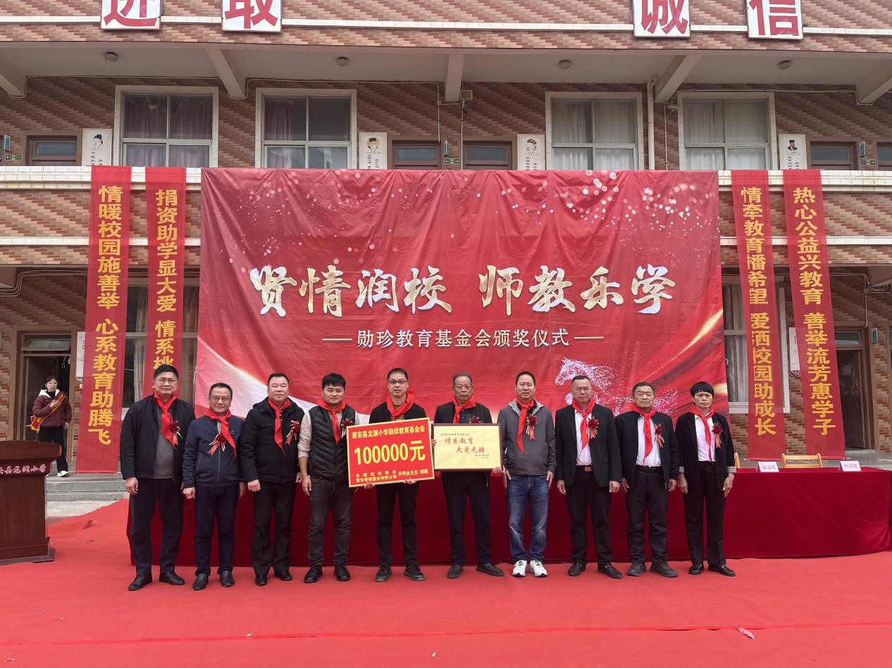 出席本次活動的領導嘉賓有:惠安香繽置業有限公司代表許分加先生、東嶺鎮黨委宣委康偉宏、東嶺鎮司法所所長駱雪東、東嶺中心小學校長、書記許福平、東嶺中心小學副書記張曉達、東嶺中心小學副校長邱曉清、東埭村黨總支、村委會全體工作人員、東埭村老人協會全體理事、龍淵小學全體師生以及部分學生家長代表齊聚現場,共同見證榮耀時刻。本次獎教獎學及助學基金均由勛珍教育基金會提供,凝聚著鄉賢企業家對學校教育事業的深切關懷與鼎力支持。